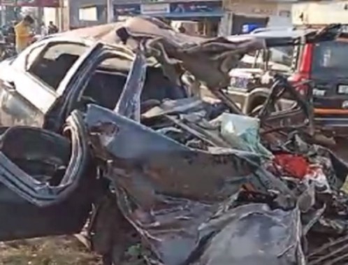 सोमवार सुबह मुरादाबाद मूंढापांडे क्षेत्र के मनकरा मोड़ के पास तेज रफ्तार कार आगे चल रही ईंटों से भरी ट्रैक्टर-ट्रॉली में घुस गई। टक्कर इतनी जोरदार थी कि कार के परखच्चे उड़ गए। पुलिस ने कड़ी मशक्कत के बाद कार में फंसे लोगों को बाहर निकाला। इसके बाद मूंढापांडे सीएचसी पहुंचायासड़क हादसे में चार युवकों की मौत, जबकि एक युवक घायल गया। जहां डाक्टरों ने कार सवार पांच युवकों में से चार को मृत घोषित कर दिया।