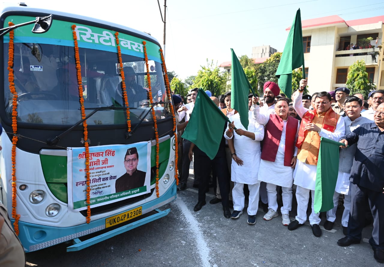 हल्द्वानी: शहर के आम नागरिकों के लिए मंगलवार का दिन नई राहत लेकर आया, जब मुख्यमंत्री पुष्कर सिंह धामी ने हल्द्वानी सिटी बस सेवा का शुभारंभ किया। मुख्यमंत्री ने सर्किट हाउस परिसर से हरी झंडी दिखाकर बसों को रवाना किया।