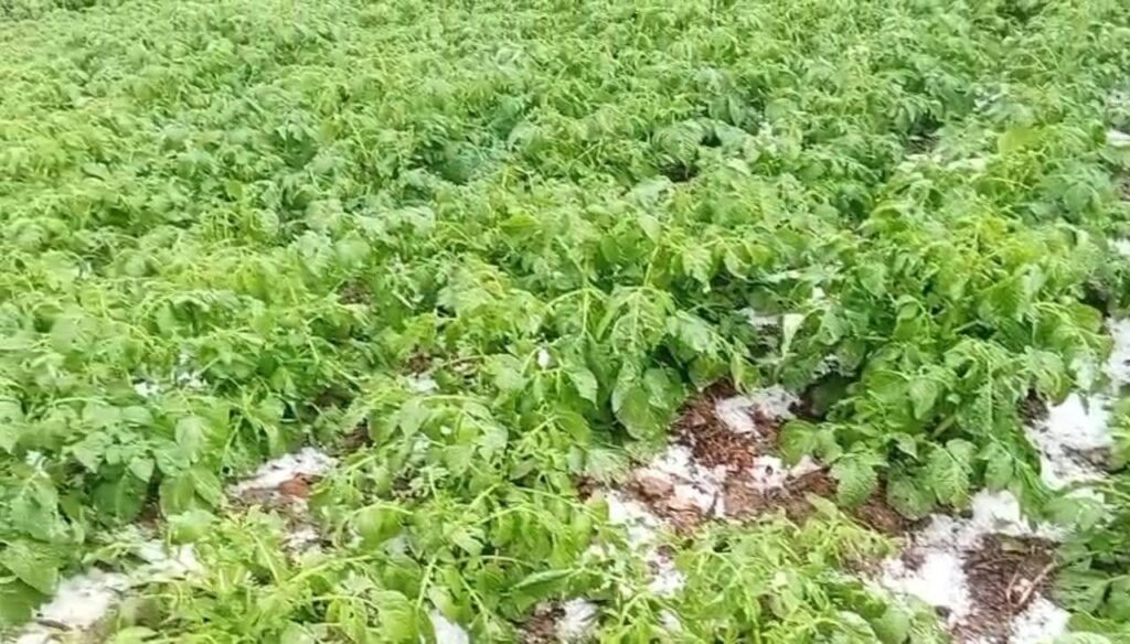 हल्द्वानी- उत्तराखण्ड में नैनीताल के ओखलकांडा, धारी और रामगढ़ क्षेत्र के कई गांवों में भीषण ओलावृष्टि ने भारी तबाही मचा दी है। यहां किसानों की मेहनत पर पानी फिर गया है, इससे आलू, मटर, सेब, नाशपाती, प्लम, आड़ू और नाशपाती, चुस्किया जैसी फल फूल बुरी तरह से बर्बाद हो गई हैं।