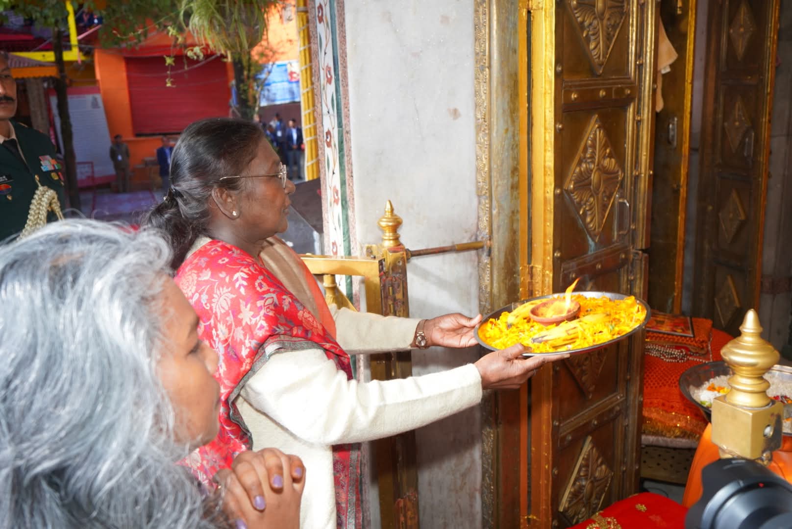 मंदिर आगमन पर मंदिर प्रबंधन समिति के सदस्यों ने माननीय राष्ट्रपति का पुष्पगुच्छ भेंट कर आत्मीय स्वागत एवं अभिनंदन किया। इस अवसर पर राज्यपाल लेफ्टिनेंट जनरल गुरमीत सिंह (से नि) तथा कैबिनेट मंत्री डॉ. धन सिंह रावत उपस्थित रहे।